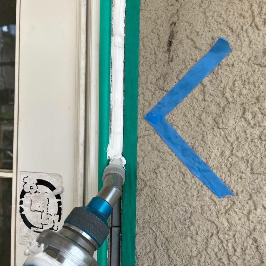 「建物の外壁ボード間のつなぎ目」や「外壁とサッシの隙間」など、動きの多い目地または隙間などに高度の防水性・機密性等を確保することを目的とした工事のことです。
