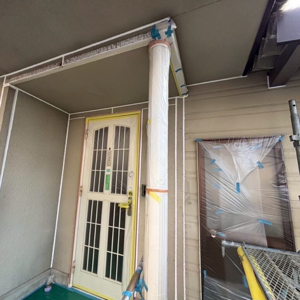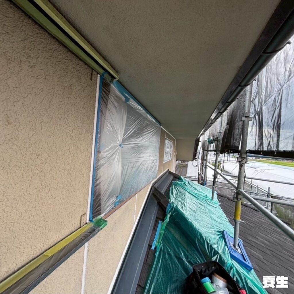 外壁塗装を行う際に「塗装する箇所以外に塗料が付着しないようにビニール等でカバーすること」です。📝
