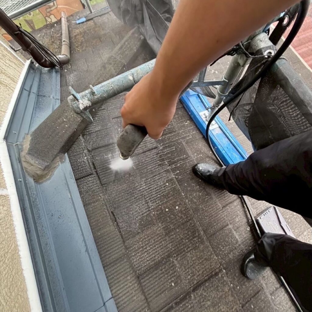 カビ、苔、藻‥既存の塗装面に付着した汚れを洗い流す作業です。📝