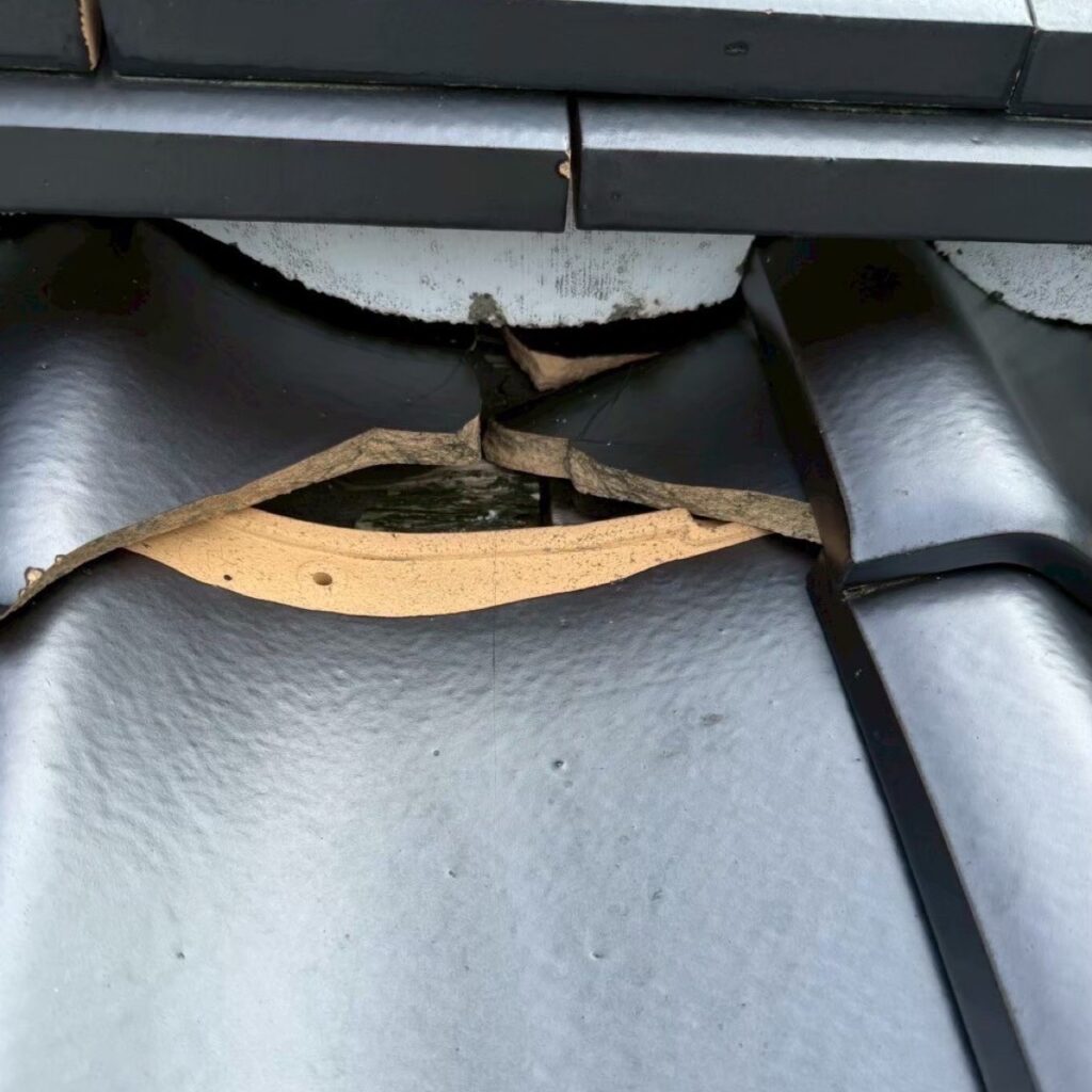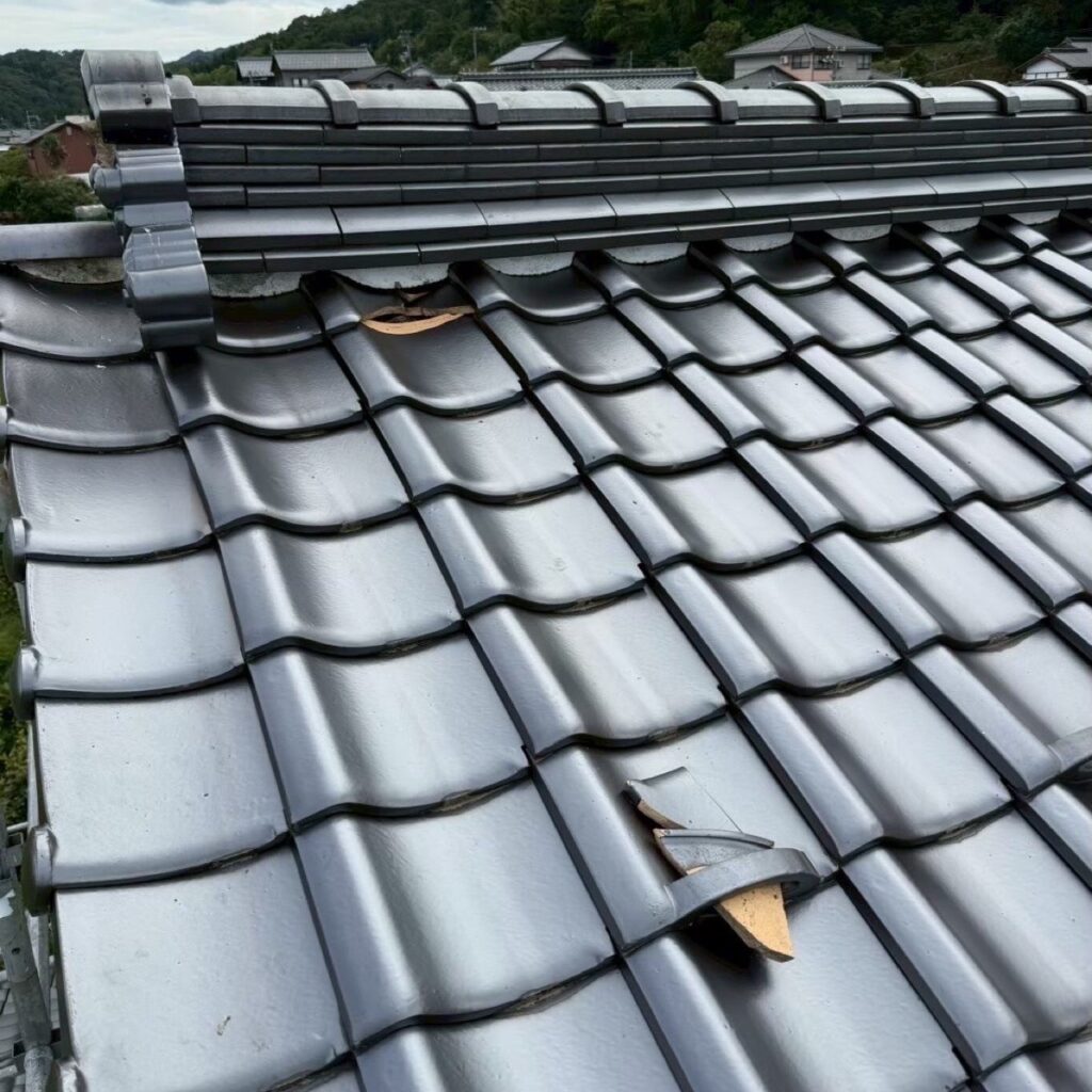 (今回、母屋の瓦の破損が見つかったためそこも同時に工事しました)