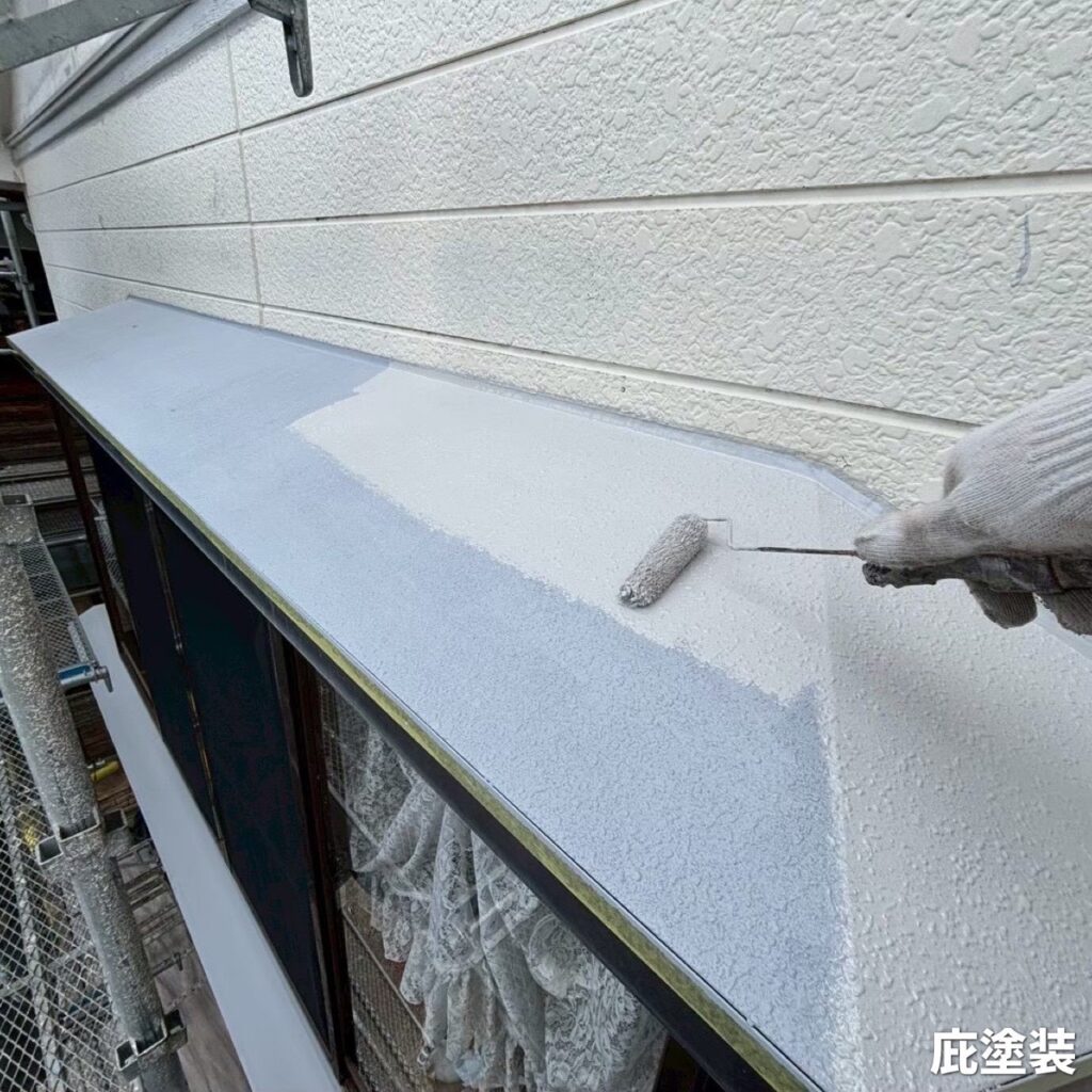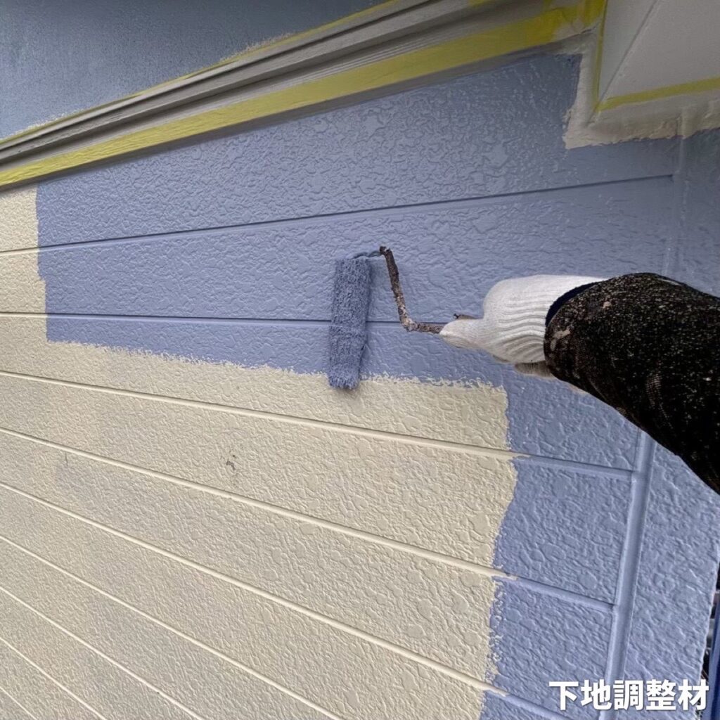 上塗りと同じ塗料を使用し、色ムラや仕上がりの不均一を防ぐための土台をしっかり整えます。