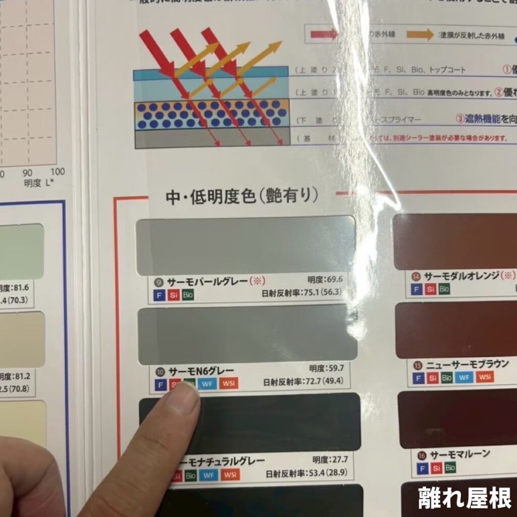 | 屋根使用塗料・色番号 | 快適サーモSi・サーモN6グレー |