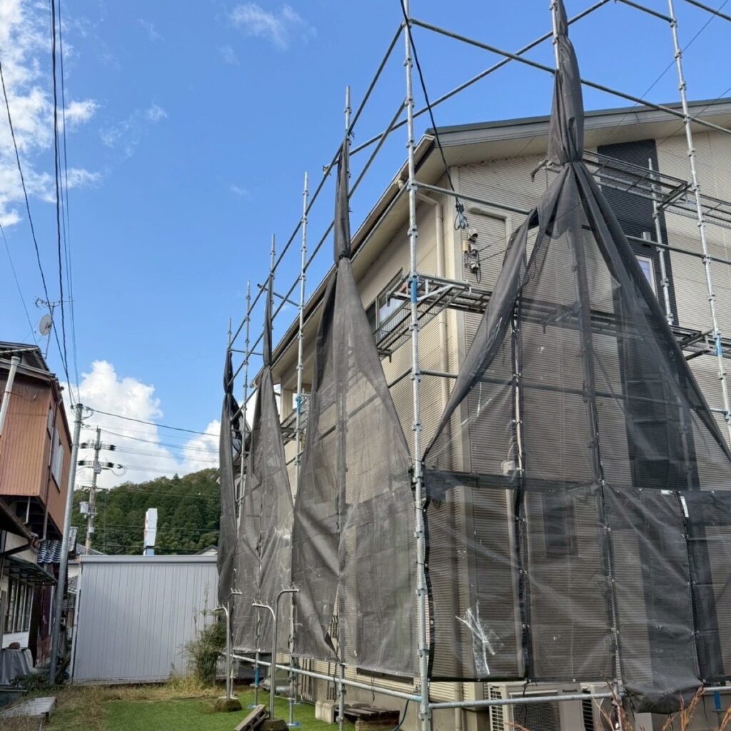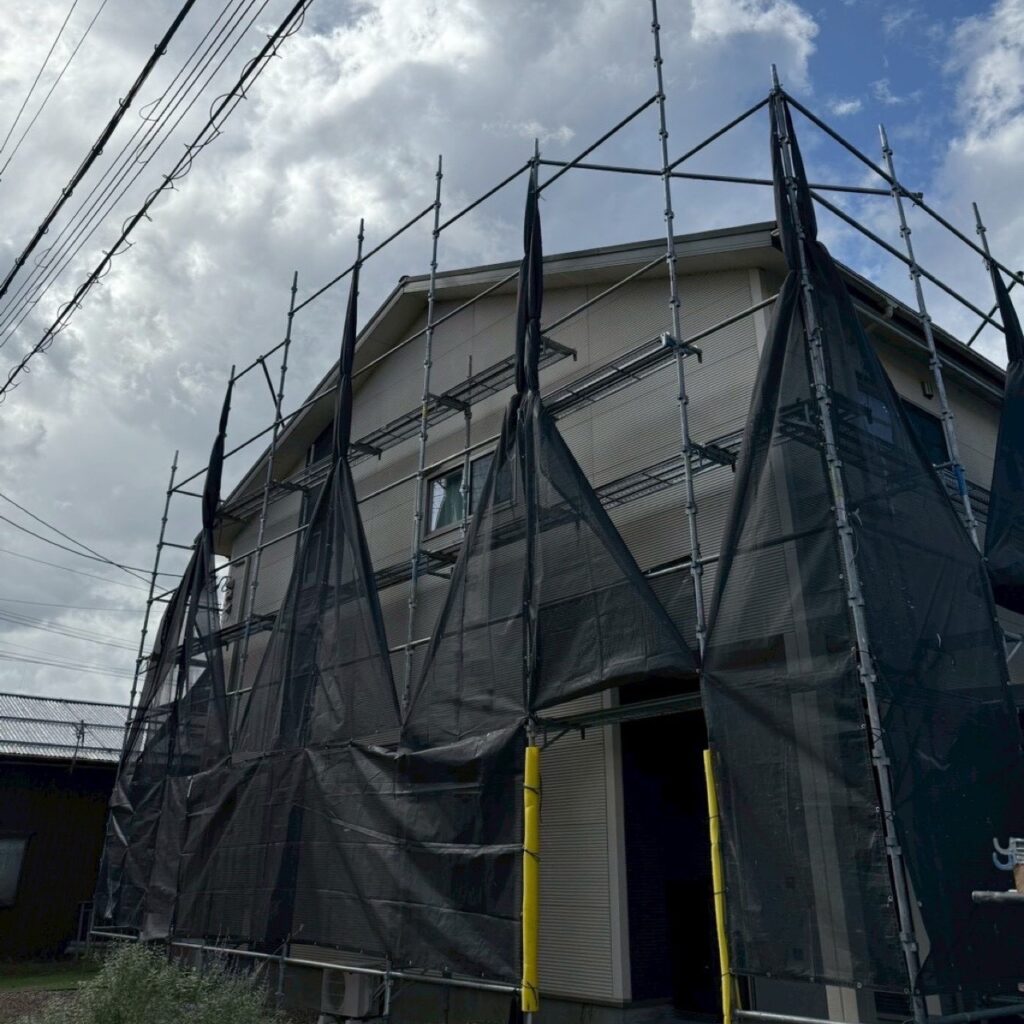 ➡外壁塗装を行う際に「塗装する箇所以外に塗料が付着しないようにビニール等でカバーすること」です。📝