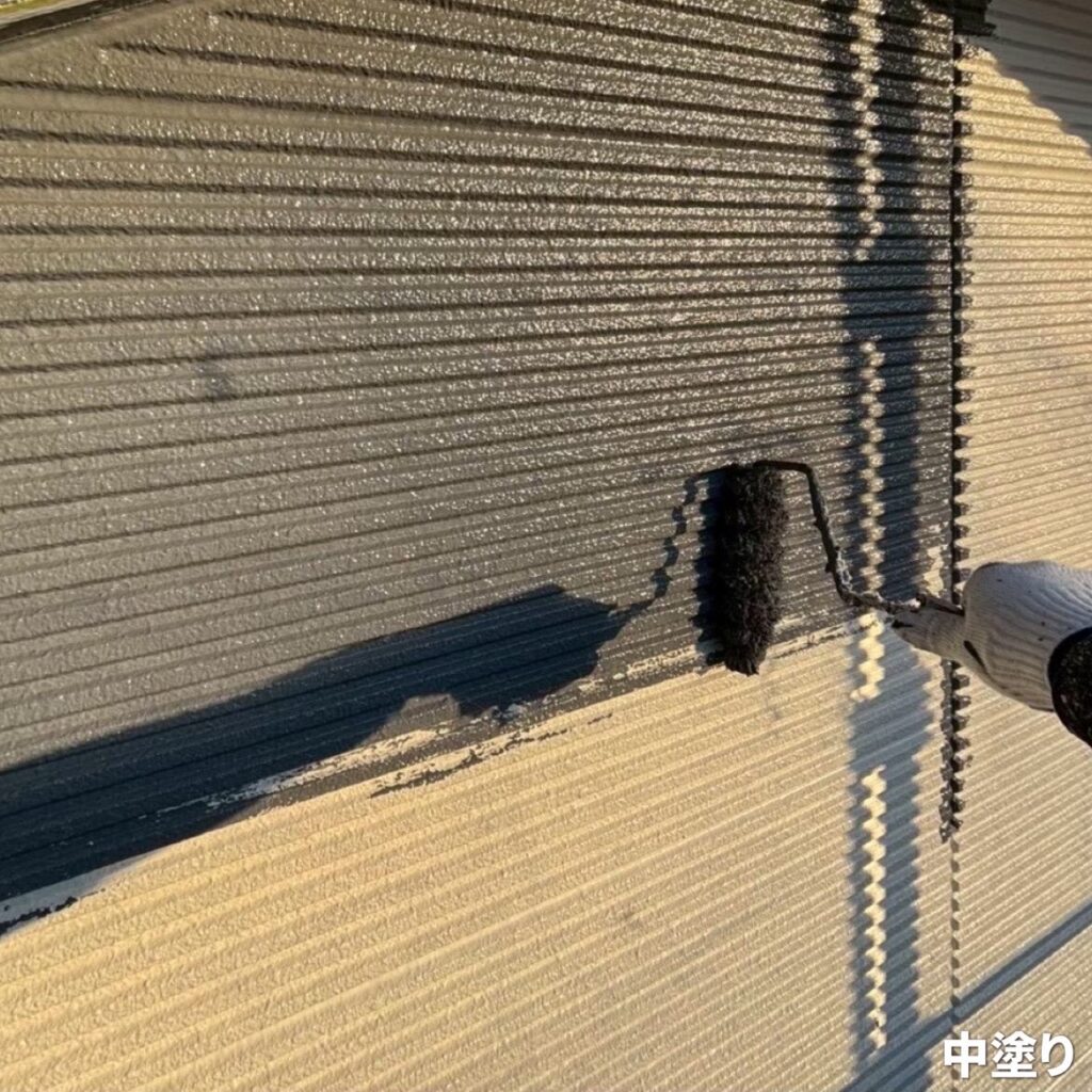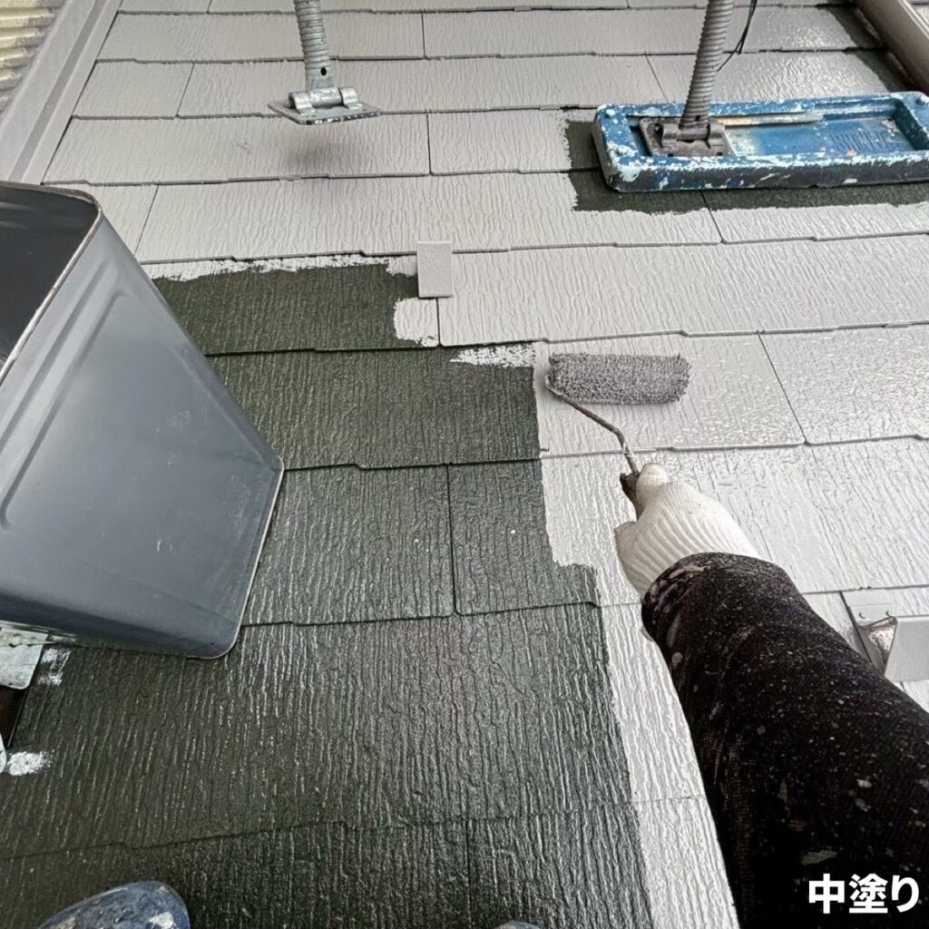 中塗りは、塗膜に厚みを持たせ、屋根の防水性・耐久性を高める工程です。