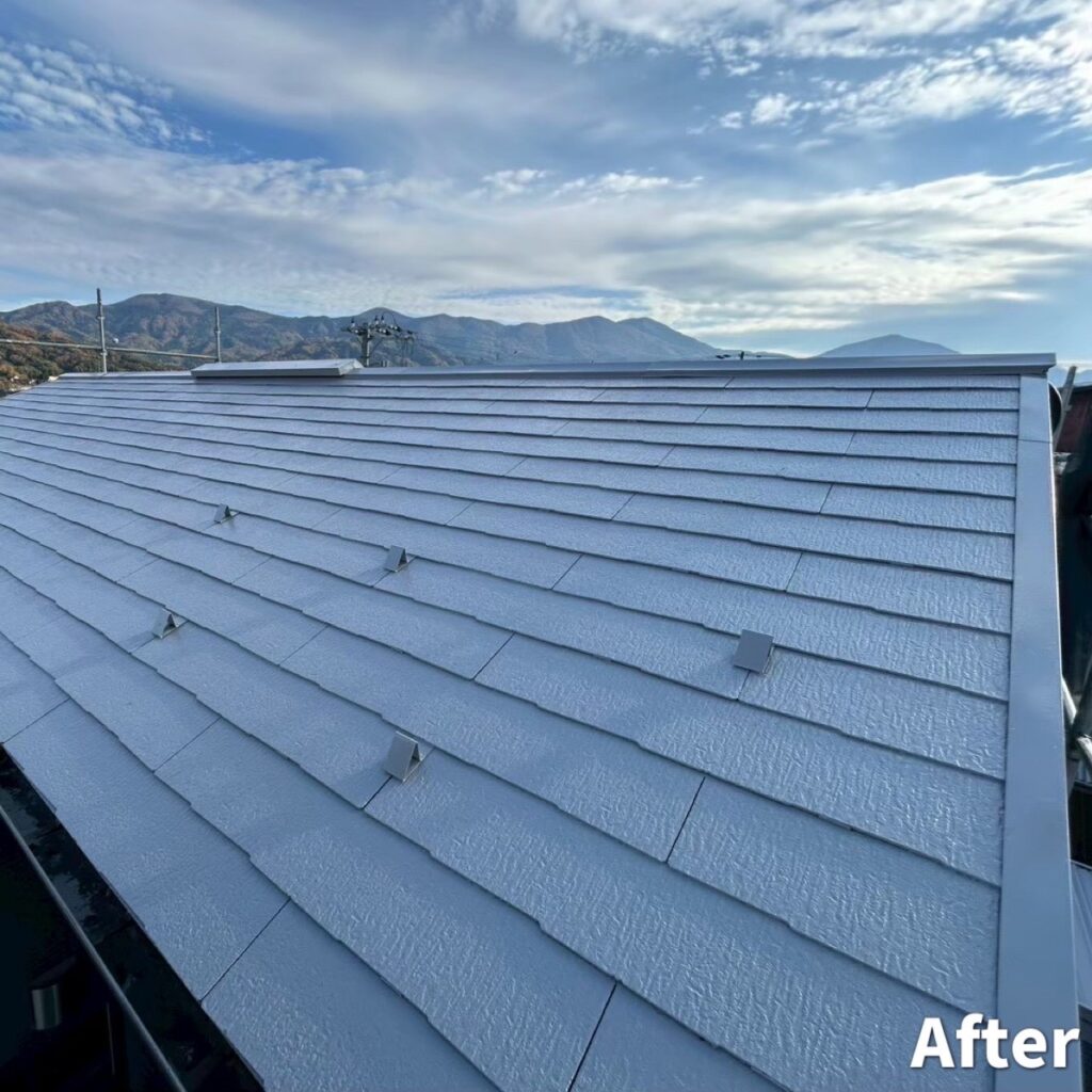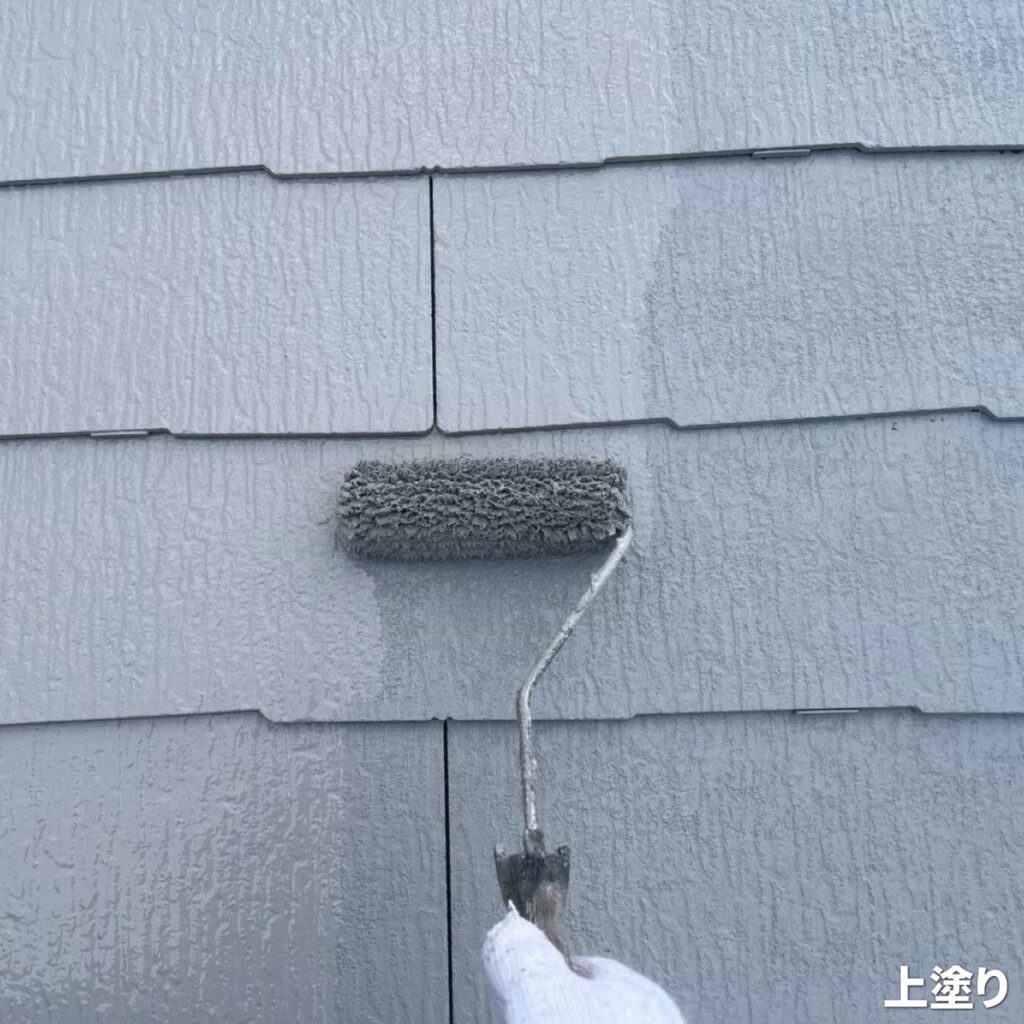 中塗りと同じ主材を丁寧に重ね塗りし、屋根全体を紫外線や雨風からしっかりと保護します。