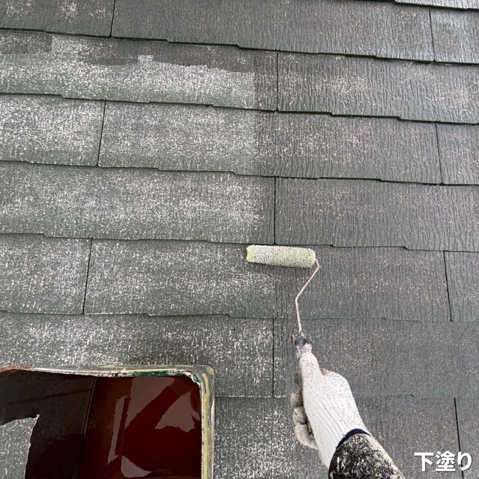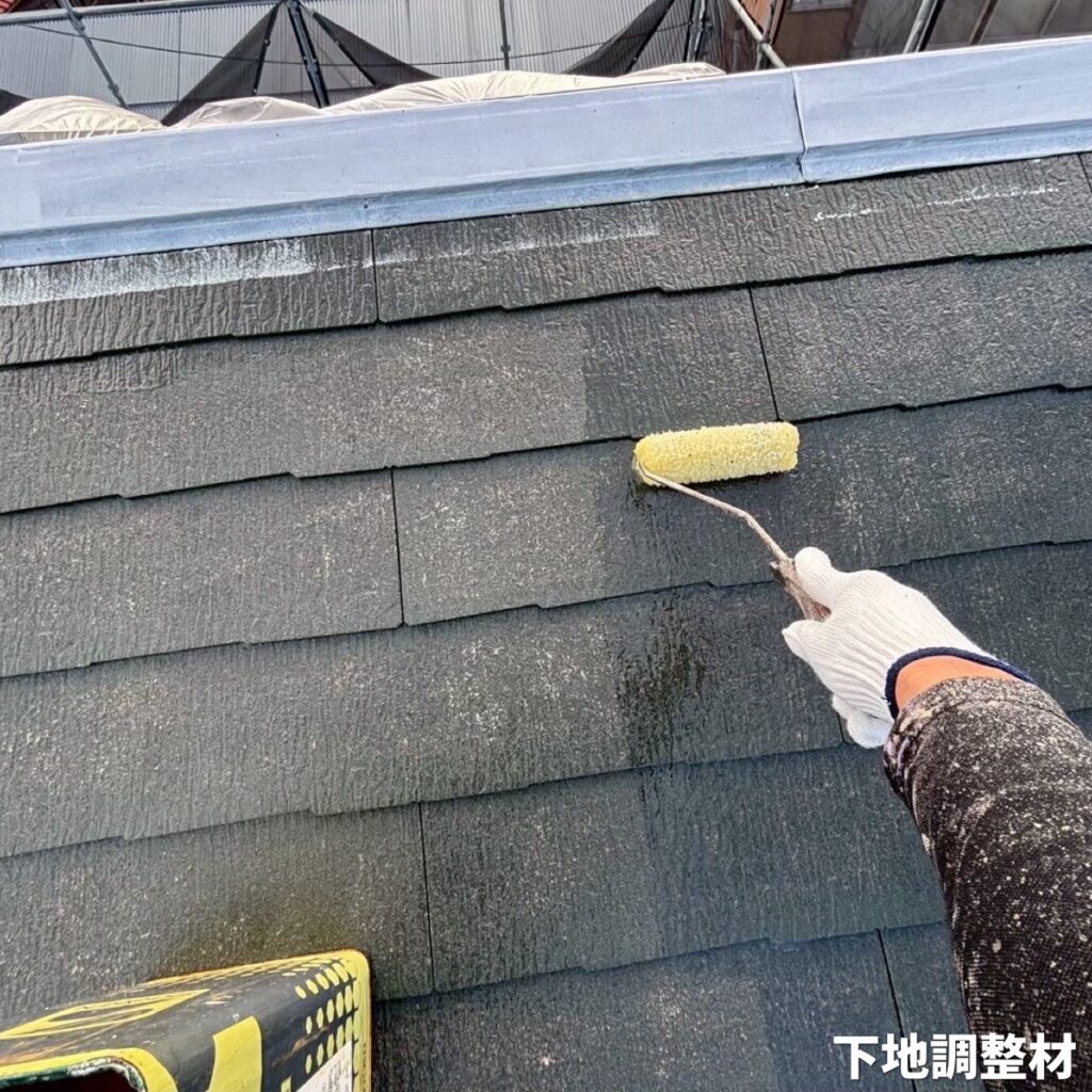 屋根材と塗料の密着性を高めるために、専用の下塗り材を1回目として塗布します。