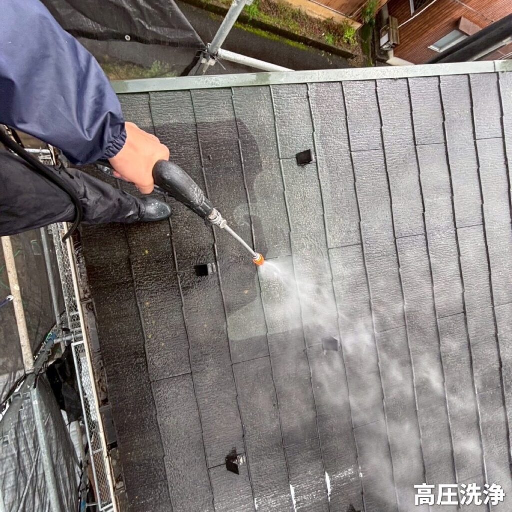 ➡カビ、苔、藻‥既存の塗装面に付着した汚れを洗い流す作業です。📝