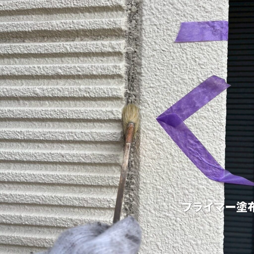 上塗りと同じ塗料を使用し、色ムラや仕上がりの不均一を防ぐための土台をしっかり整えます。